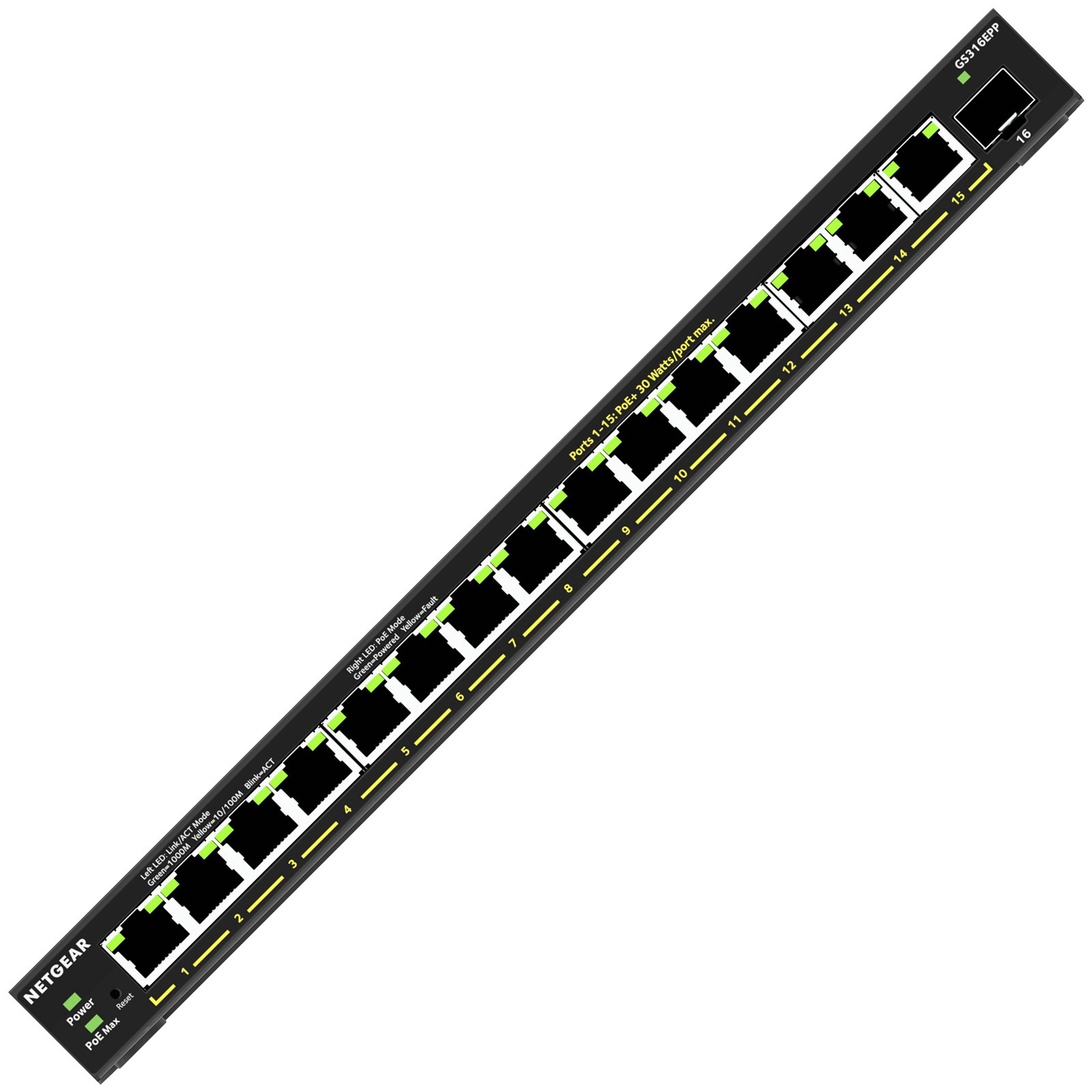 NETGEAR GS316EPP-100PES is a high-performance network switch designed for efficient networking and WiFi management within professional environments. This device features 16 auto-sensing Gigabit RJ45 ports, complemented by dedicated SFP ports, and supports Power over Ethernet (PoE) to supply power and data through a single cable. Ideal for use in small to medium-sized businesses, this switch serves as a reliable lan splitter, enabling seamless network changeovers and expanding local area networks without disruption. Typical applications include connecting multiple network devices such as routers, access points, IP cameras, and VoIP phones, making it an essential component in network hubs where robust and flexible data routing is required. Engineers value the GS316EPP for its combination of performance, efficiency, and ease of integration into existing network infrastructures.