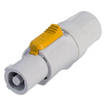 B-type locking mains plug from Neutrik providing a compact solution where secure and reliable mains connections are required at currents of up to 20A. Plugs are inserted and twisted to lock with unlocking by release lever.