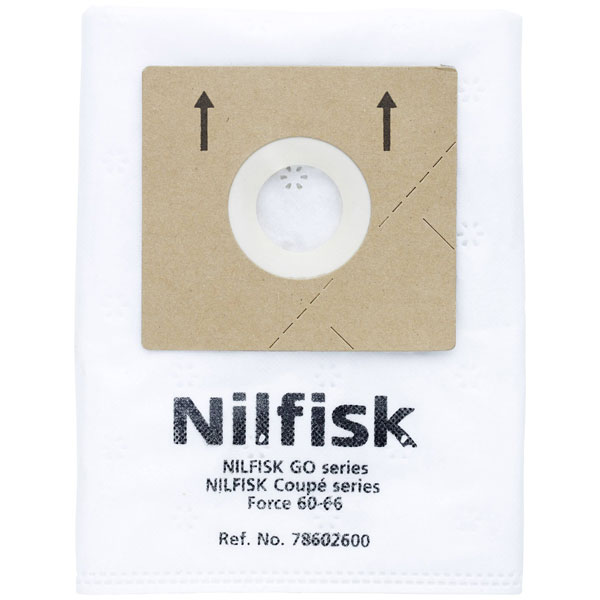 Nilfisk 78602600 is the manufacturer's part number for a set of vacuum cleaner bags specifically designed for use with the GM 60 vacuum cleaner. These dust bags, supplied in packs of five, are crafted to enhance the efficiency and lifespan of the vacuum cleaner by effectively capturing and containing dust and debris. As an essential component of vacuum cleaner maintenance, these bags ensure optimal air filtration and suction power, contributing to cleaner indoor environments. Common applications include residential and commercial cleaning tasks where maintaining high indoor air quality is a priority. The product's design is tailored to meet the needs of engineers and maintenance professionals who require reliable and durable vacuum cleaner accessories.