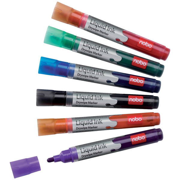Nobo 1901419 Liquid Ink Drywipe Marker Pens - Pack of 6