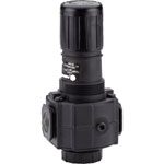 This compressed air pressure regulator from the Excelon range has been designed to allow in-line or modular installation with the minimum of fuss. The regulator features a push-to-lock adjustment knob.