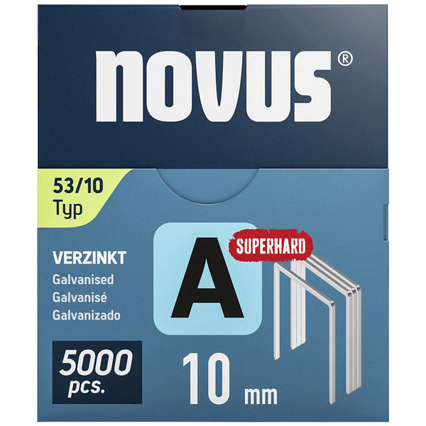 The Novus Tools 042-0763 staple strip, type A53/10, features dimensions of 10 mm in length and 11.3 mm in width. Manufactured to high standards, these staples are commonly used in office and light industrial applications. With a pack containing 5000 pieces, they are ideal for high-volume stapling tasks.