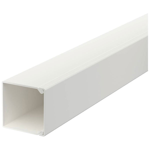 The OBO Bettermann cable duct 6191053 is a pure white conduit measuring 2000 x 25 x 25 mm. It is designed for flush mounting, providing a neat and organised solution for wiring and cable management. This product is ideal for protecting and concealing electrical cables in residential or commercial environments.