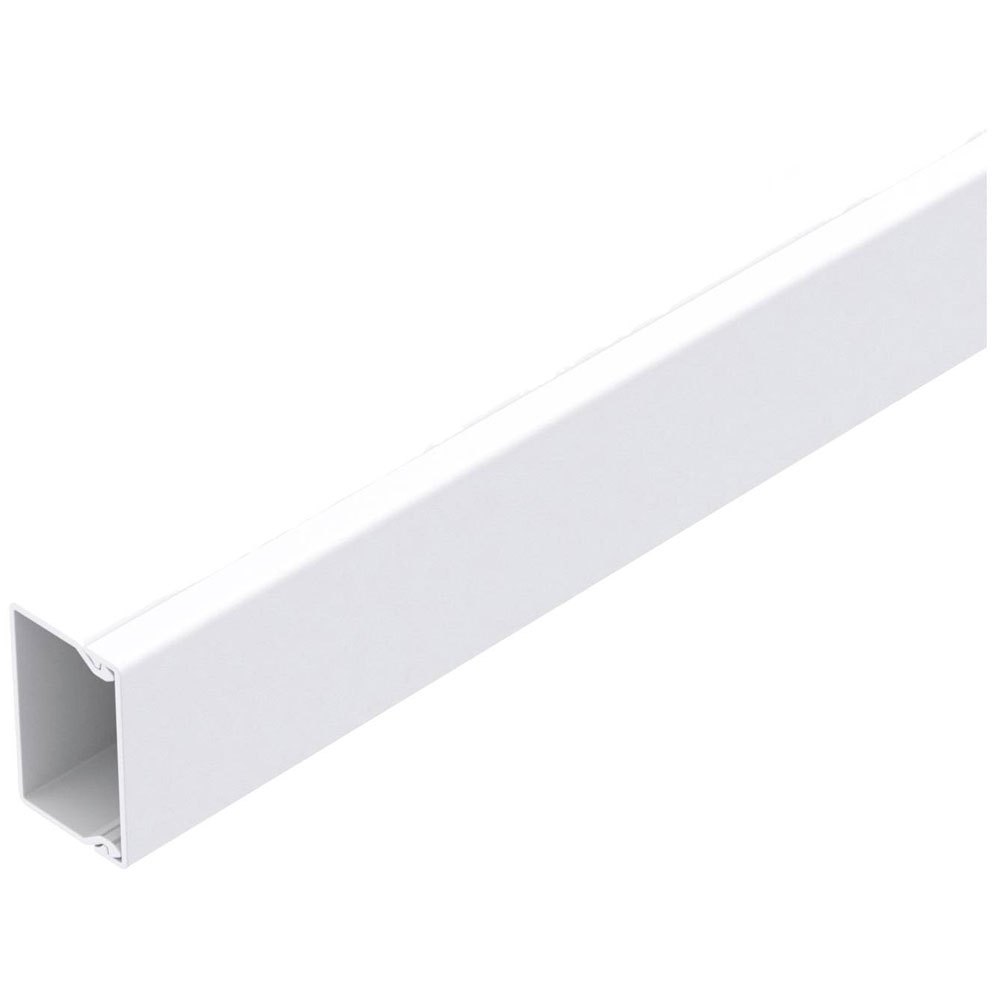 The OBO Bettermann 6191061 cable duct, measuring 2000 x 40 x 25 mm, is a pure white flush mount conduit ideal for organizing and protecting electrical wiring. Its design supports neat and efficient cable management for both residential and commercial settings. Suitable for use as a cable cover, this duct ensures safety and aesthetics in various installations.