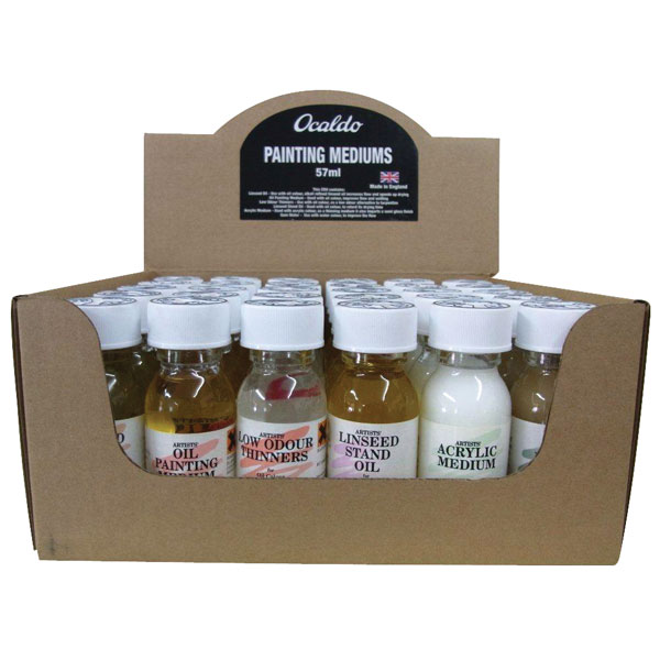 A set of 30 bottles of assorted painting mediums from Ocaldo.