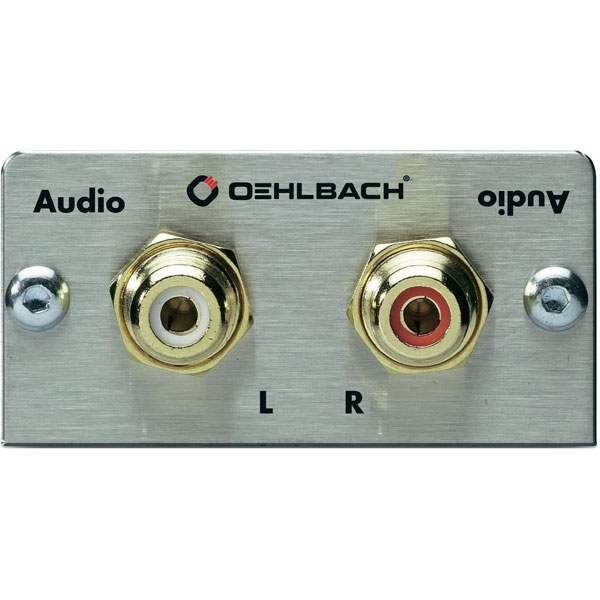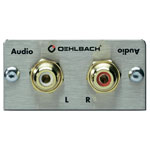 The Oehlbach MMT Audio multimedia tray has stereo RCA connectors on the front panel and soldered connections at the rear. The contacts are 24-carat gold-plated. The MMT range comprises a set of multimedia trays carrying various connectors and a mounting frame (55-6814) system. The mounting frame can accomodate any two multimedia trays or one tray and a cover.