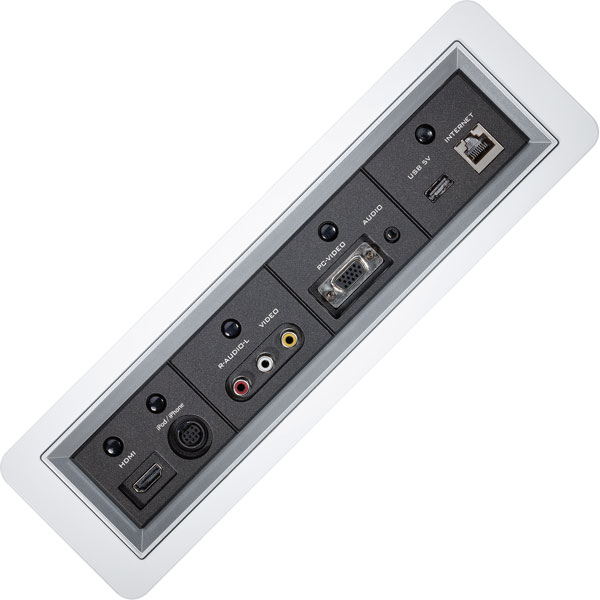 The Oehlbach MediaCenter W7-C is a comprehensive wall-mount media collection and switching hub for all your audio/video needs. On the front panel it has inputs for YUV component video and VGA with separate audio, plus HDMI, and iPad/iPhone (via adaptor). It features a network connector and a USB port for charging devices. At the rear it has an HDMI output, network socket and power socket. The HDMI interface supports 1920 x 1080p at 60Hz while the PC video best resolution is SXGA 1280 x 1024 at 60Hz. The MediaCenter’s iPod/iPhone interface has an up scaling function to deliver high quality image and sound to your HD TV. Supplied with HDMI cable A-A 2m, iPod/iPhone cable 1m, AC power adaptor 100~240V (5V2A), cable kit. This is also supplied with an HDMI over CAT 5 extender which can send 1080p HDMI signals up to 50m using a pair of network cables. The MediaCenter is also available without this adaptor 55-6838.