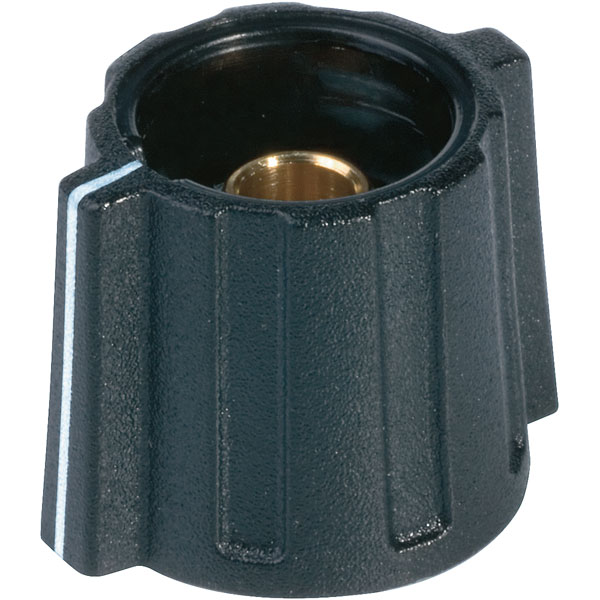 The OKW Wing Knob Black 16mm with White Marker Line has been manufactured for rotary potentiometers with round shaft ends according to DIN 41591. The collet system is for convenient knob assembly from the front and simple adjustment (with adjustment key, sold seperately).