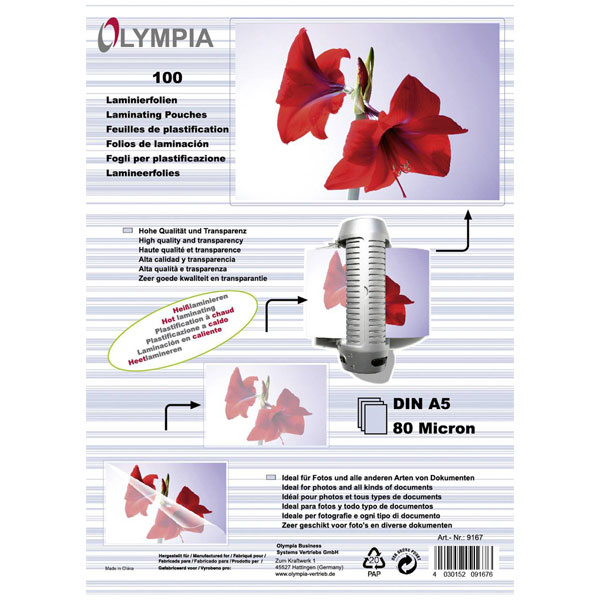 Olympia 9167 Laminate Sheet A5 Glossy 100 pcs