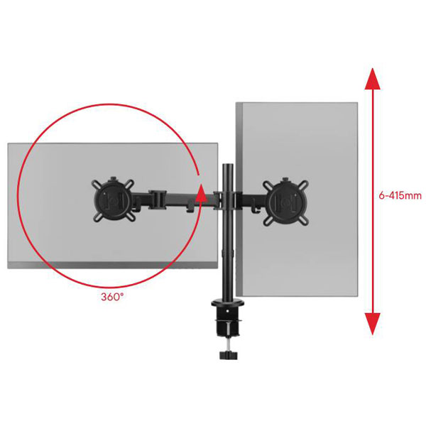 One For All DM 2210 is a height-adjustable monitor desk mount designed to support displays ranging from 13 to 32 inches. This robust Smart Dual black monitor base offers flexibility and stability, featuring a fully adjustable VESA stand compatible with the Flat Display Mounting Interface (FDMI) standard for ease of installation. Engineered for diverse applications, the DM 2210 is particularly suited for workplace environments, allowing users to optimise their viewing angle and desk space efficiently. Its durable construction accommodates various PC screen brackets and is ideal for ergonomic setups, ensuring reduced strain during prolonged use. The DM 2210 is an exemplary choice for engineers seeking reliable monitor holder solutions within professional or home office settings.