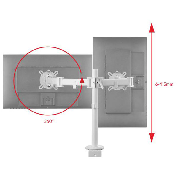One For All DM 2220 is a robust desk mount designed for monitors ranging from 33 to 81 centimetres in size, featuring a sleek black finish and a height-adjustable mechanism. This monitor holder is engineered to support VESA-compliant displays, also known as FDMI mounts, ensuring compatibility with a wide range of screen types within the specified dimensions. The smart dual design of the desk mount allows for flexible adjustment, making it ideal for engineering applications where precise screen alignment is critical, such as CAD modelling stations and control room setups. The mount's stability and ease of adjustment are crucial for maintaining ergonomic viewing angles, enhancing productivity and reducing strain in professional work environments.