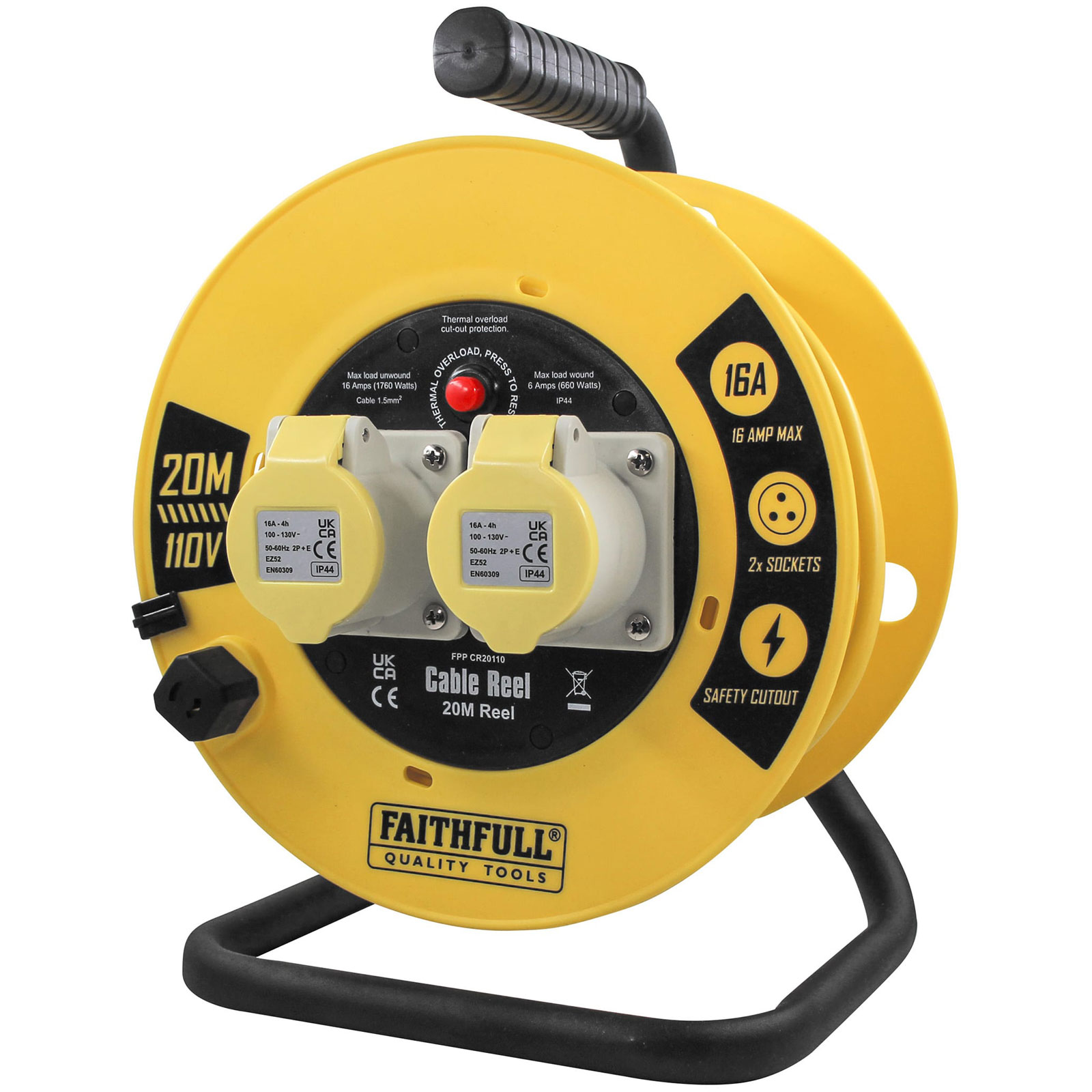 Faithfull Power Plus XP03-SY4H Open Cable Reel 110V 20m 16A 2 Socket 1.5mm Cable