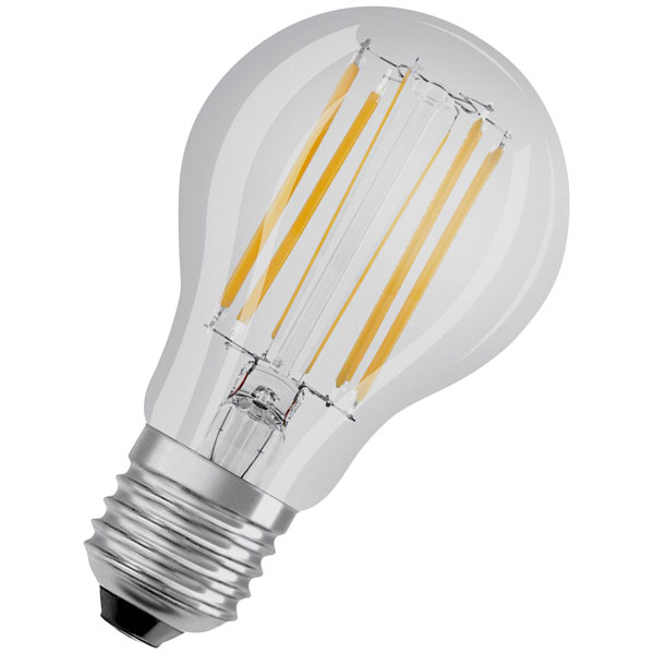 LED lamps, classic piston shape. Product features: Professional LED lamps for mains voltage. Not dimmable. Mercury-free lamps. Lifetime: Up to 15,000 h. Beam angle: Up to 300°. Product advantages: Lamps with innovative LED filament technology. Design, dimensions, luminous flux comparable to incandescent or halogen lamps. Very low power consumption. No UV and IR-close components in the light beam. Instant 100% light, no warm-up time. Application areas: Applications in the household. General lighting. Outdoor use only in outdoor lights (at least IP65). Ideal for decorative fixtures.