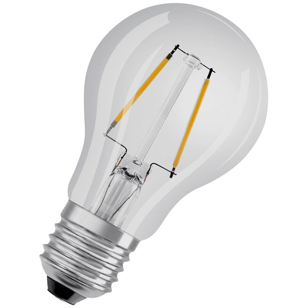 Dimmable LED lamps, classic bulb shape. Product features: Professional LED lamps for mains voltage. Dimmable mercury-free lamps. Transmission angle: Up to 300° Lifecycle up to 50 15,000 hrs Product advantages: Lamps with innovative LED "filament" technology. Very low power consumption. No UV and IR-related parts in the light beam. Instant 100% light, no warm up time. Easy replacement of standard bulbs. Lower heat generation (compared to the standard reference product). Design, dimensions, luminous flux comparable to a light bulb or halogen lamp. Areas of application: Applications in household. General lighting. Use in outdoor areas only in outdoor lamps (at least IP65). Ideal for decorative installations.