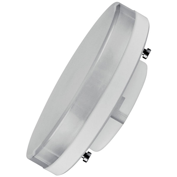 Flat LED lamps with GX53 base. Product features: Direct operation with 230 V mains voltage. High colour consistency: ? 6 SDCM (threshold unit). Not dimmable. Protection class: IP20 Very long average life: 15,000 h (15 years at 2.7 h per day). Product advantages: Compact dimensions. Easy to install. Excellent light yield. Good light quality. Low weight and low installation height. Areas of application: Surface lighting. For marking down stages, doors, stairs, etc. Basic lighting Domestic applications. Entrance lighting Exhibitions, department stores. For interior lighting only. Kitchen lighting.