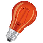 coloured LED lamps, classic piston shape, with screw base. Product features: LED lamps for mains voltage. Common bulb shape. E27 socket. Not suitable for use on dimmers. Mercury-free lamps. Product advantages: Very low energy consumption. Very long life. Simple exchange with conventional bulbs. Low heat generation. Application areas: Interior lighting, terraces, beer gardens and restaurants. Energy-saving and low maintenance in tents and theme parks. Fairy lights. Outdoor use only in outdoor lights (at least IP65).