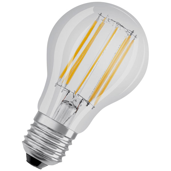 LED lamps, classic piston shape. Product features: Professional LED lamps for mains voltage. Not dimmable. Mercury-free lamps. Lifetime: Up to 15,000 h. Beam angle: Up to 300°. Product advantages: Lamps with innovative LED filament technology. Design, dimensions, luminous flux comparable to incandescent or halogen lamps. Very low power consumption. No UV and IR-close components in the light beam. Instant 100% light, no warm-up time. Application areas: Applications in the household. General lighting. Outdoor use only in outdoor lights (at least IP65). Ideal for decorative fixtures.
