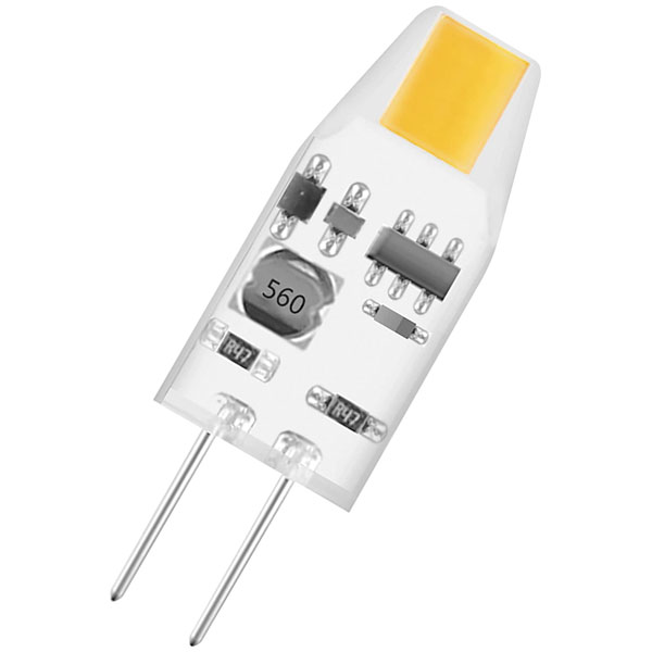 Small 12 V low-voltage LED lamps with retrofit plug base. Compatible with many commercially available electronic ballasts (see also "compatibility list"). LED alternative to low-voltage halogen lamps. Variable use on DC and AC voltage possible. Good all-round light emission. ideal for decorative and free burning applications. Long life of up to 15,000 h.