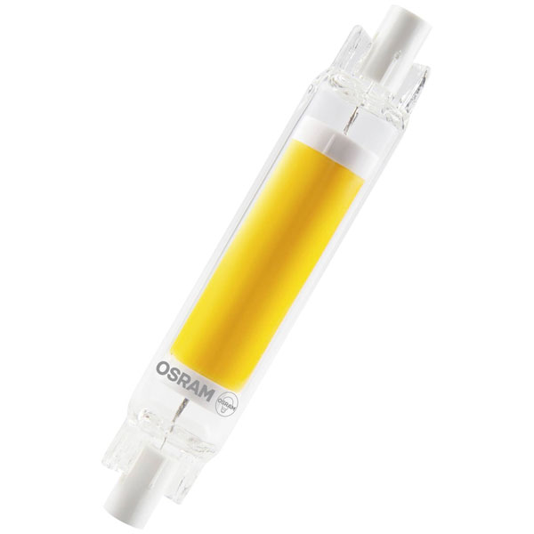 Slim LED lamps with R7s- retrofit socket. LED alternative to conventional R7s lamps Good light quality; Colour rendering index Ra over 80; constant colour location. Particularly compact dimensions. Lower heat generation (compared to the standard reference product). Long life of up to 15,000 h. Lower energy consumption than incandescent or halogen lamps. General lighting at ambient temperatures of -20…+40 °C. For outdoor use only in suitable outdoor lamps.