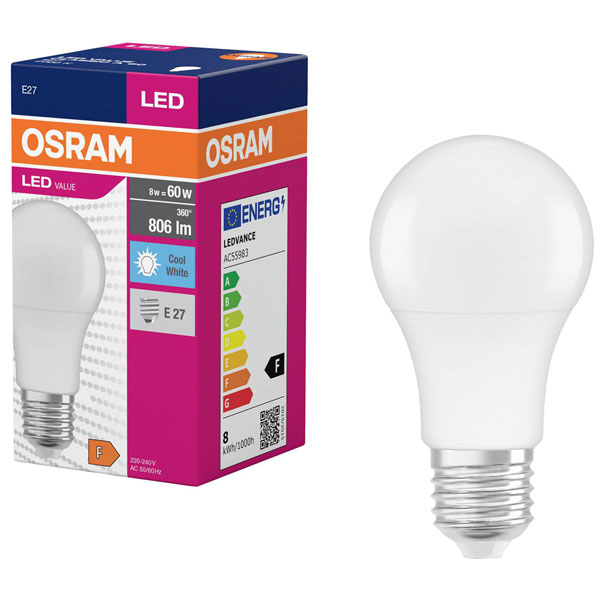 OSRAM 4099854109799 LED VALUE CLASSIC A 8W 840 Frosted E27 Bulb