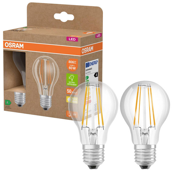 OSRAM 4099854253508 LED LAMPS FILAMENT CLASSIC A 3.8W 827 Clear E27 Bulb