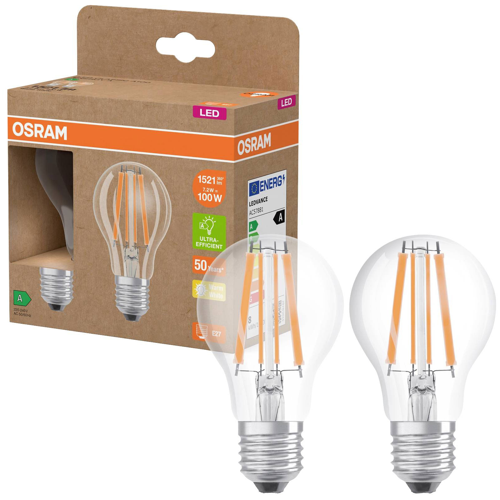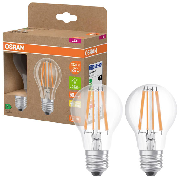OSRAM 4099854253706 LED LAMPS FILAMENT CLASSIC A 7.2W 827 Clear E27 Bulb