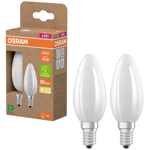 OSRAM 4099854253805 LED CLASSIC B Energy Eff A 2.2W 827 Frosted E14 Bulb