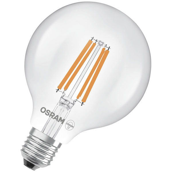 Osram 4058075839526 is an LED light bulb designed to fit standard indoor light fittings. This specific model is an LED Classic Globe 95 75 Filament bulb, characterised by its clear E27 base and low power consumption of 5 watts, which corresponds to an energy efficiency class A rating. Emitting a cool white light with a 840 colour rendition, it is suitable for environments that require bright and efficient lighting such as workspaces, kitchens, and study areas. The LED technology ensures long operating life and reliability, making it a practical choice for both residential and commercial settings where consistent illumination is essential.