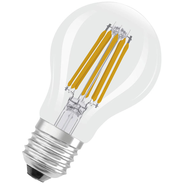 Osram 4099854348037 is a pack of three LED bulbs designed to provide energy-efficient indoor lighting. Each bulb operates at a power rating of 7.2 watts and fits an E27 socket, producing a warm white illumination with a colour temperature of 2700 Kelvins, delivering a clear, natural light ideal for residential and office environments. Certified with an Energy Efficiency Class A rating, these bulbs offer a reliable and economical lighting solution, particularly suited for settings requiring high quality and sustained light output with reduced energy consumption. The filament design emulates the classic incandescent appearance, making these bulbs suitable for both retrofitting in existing fixtures and new installations, where maintaining an aesthetic traditional light bulb appearance is desirable.