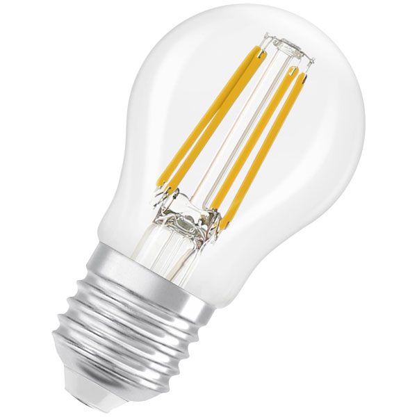 Osram 4099854443947 is an LED light bulb known as the LED Superstar Classic P 40 Filament DIM 3.4W 827 Clear E27. This product features an E27 base fitting and operates at a power consumption of 3.4 watts, emitting a warm white light at 2700 Kelvin, which is ideal for creating cosy indoor environments. The bulb's compact size, with dimensions of 45x45mm, fits seamlessly into various indoor light fittings, making it suitable for residential and commercial settings where energy efficiency and long lamp life are priorities. Additionally, it is designed for dimmable applications, allowing for customised lighting scenarios that can enhance comfort and energy savings within technical installations.
