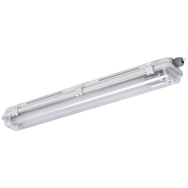Osram Homelighting 4099854462658 is a durable and efficient LED light solution designed for versatility in various indoor environments. Constructed from recycled plastic, the G13 T8 light fitting features two 7-watt LED tubes rated at 840 lumens, providing reliable illumination with energy efficiency. With a focus on safety and robustness, this fixture is well-suited for use in challenging applications such as wet rooms, basements, and garages, where moisture resilience and consistent performance are critical. Its design permits installation in spaces where traditional lighting solutions, such as davy and miners lamps, may not be feasible. This product is ideal for engineers and technicians seeking a sustainable and efficient lighting option for indoor environments requiring reliable and safe illumination.