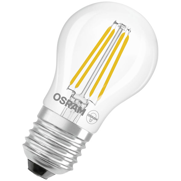 Osram 4099854467790, also referred to as the LED Star Classic P 40 Filament 3.4W 827 Clear E27, is a high-performance indoor LED light bulb specifically designed for residential and commercial use. This light bulb features an E27 base and delivers warm white illumination, producing an energy-efficient output equivalent to traditional bulbs while maintaining a filament-style aesthetic. With dimensions of 45x45 mm, it is well-suited for a range of fixtures and applications including living spaces, hospitality environments, and bespoke lighting solutions where superior light quality and low power consumption are essential. The clear glass design enhances light dispersion, making it an optimal choice for luminaires that require optimal diffusion and ambiance.