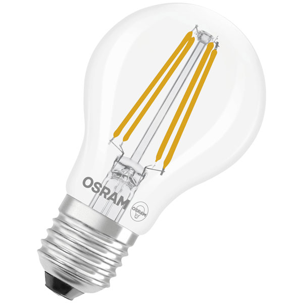 Osram 4099854467912 is the LED Star Classic A 60 Filament bulb, a technologically sophisticated indoor lighting component. This LED bulb, which is designed with an E27 fitting, delivers optimal energy efficiency consuming only 5.9 watts while emitting a warm white light that corresponds to a colour temperature of 2700K, encapsulated in a clear, filament-style enclosure. Its dimensions are Ø60 mm in diameter and 60 mm in height, making it compatible with standard domestic light fittings. The bulb is engineered for use in residential settings, providing efficient, high-quality lighting for living areas, hallways, and other interior spaces where a reliable light source is essential.