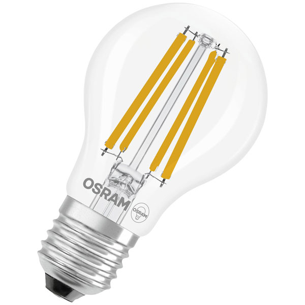 Osram 4099854514197, is the LED Base Classic A 100 Filament 11W 865 Clear E27 bulb suitable for indoor light fittings. This LED light bulb, recognised for its efficiency and daylight white illumination, provides a power consumption of 11 watts while delivering a luminous intensity comparable to traditional incandescent alternatives. Designed for typical engineering and domestic environments, it integrates seamlessly into existing E27 socket installations, making it an ideal replacement for energy-intensive lighting solutions. With a focus on longevity and consistent performance, this OSRAM bulb is engineered to meet the demands of diverse applications, ranging from residential areas to office spaces, ensuring robust illumination where clear visibility is essential.