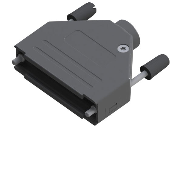 Plastic screw-fit top entry D connector cover from Ossi Connectors.