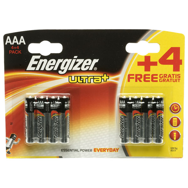 Pack of 4 Energizer Ultra AAA Batteries + get 4 Free!