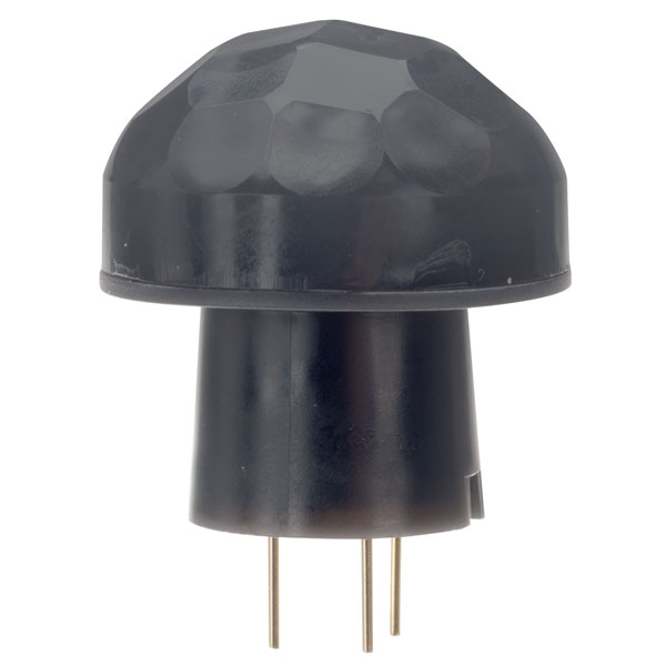 A highly compact PIR sensor housed in a TO5 package fitted with a zoned fresnel lens. The sensor detects infra-red radiation in the low infrared spectrum (10µm wavelength) which is emitted by human movement.