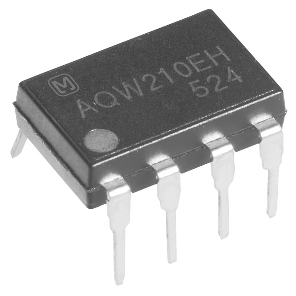 PhotoMOS signal relays, 350V load voltage, 120mA load current, 50mA LED forward current, 5V LED reverse voltage, DIP8, 1.2mA LED operate current, 18R on resistance, 0.5ms turn on time, 0.08ms turn off time, 5000V AC isolation voltage, 850mW dissipation, 2 form A contact configuration, -40 to +85°C, 9.86mm long, 6.4mm wide, 3.2mm high, dual PhotoMOS relays in an 8-Pin 9.78 x 6.4 x 3.9mm DIP package. LED and optoelectronic inputs. MOSFET output stages. High isolation. Low ON resistance. Long operational life. UL and CSA approved. Matsushita AQW series, applications include High-Speed inspection machines, telecommunications equipment and computers.