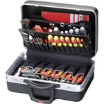 This roller tool case from Parat has been manufactured to a high standard, using durable Con-Pearl® tool boards and X-ABS plastic. Other features include the 4-stage telescopic handle from 0.95m-1.15m, rubber-coated wheels with sliding bearings, sturdy shells (suitable for air travel), double aluminium frame, locks with safety latch and individually adaptable CP-7 tool holder system.