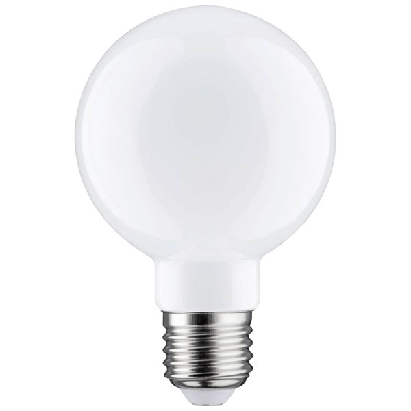 The Paulmann 28701 LED bulb features a globe shape and consumes just 7.5 watts, offering warm white illumination. This monochrome LED bulb is ideal for creating a cosy atmosphere in home lighting applications. With dimensions of 80 mm in diameter and 118 mm in height, it fits standard E-27 sockets.