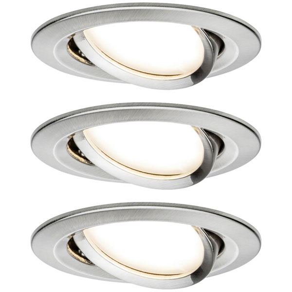 Paulmann's 92959 LED recessed light 3-piece set features 18 W monochrome LEDs in brushed iron, providing a sleek and modern look. These lights are ideal for creating focused illumination in residential or commercial spaces. Their recessed design allows for seamless integration into ceilings, enhancing room aesthetics.