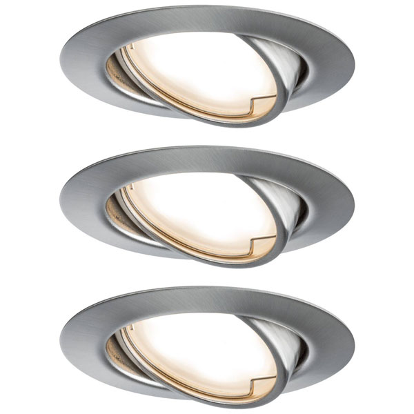Paulmann's 93421 flush mount light set includes three brushed iron fixtures with monochrome LED lighting, each consuming 15 watts. These recessed lights are designed for modern settings, providing elegant and energy-efficient illumination. Ideal for both residential and commercial applications, they offer a sleek, unobtrusive lighting solution.