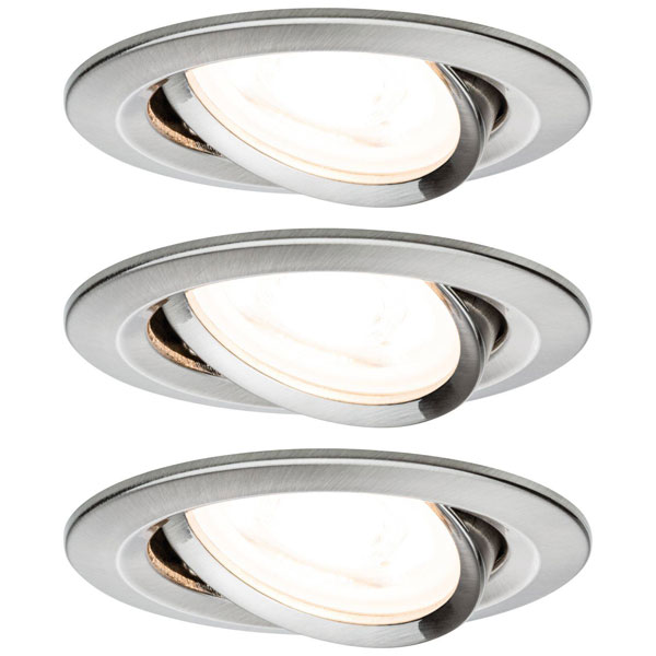 Paulmann offers the 93429 Nova flush mount light set, featuring energy-efficient LED GU10 bulbs with a power rating of 19.5 W in a sleek brushed iron finish. This recessed lighting set provides a monochrome aesthetic, making it ideal for modern interior designs. Commonly used in residential settings, these fixtures are perfect for creating ambient or task lighting.