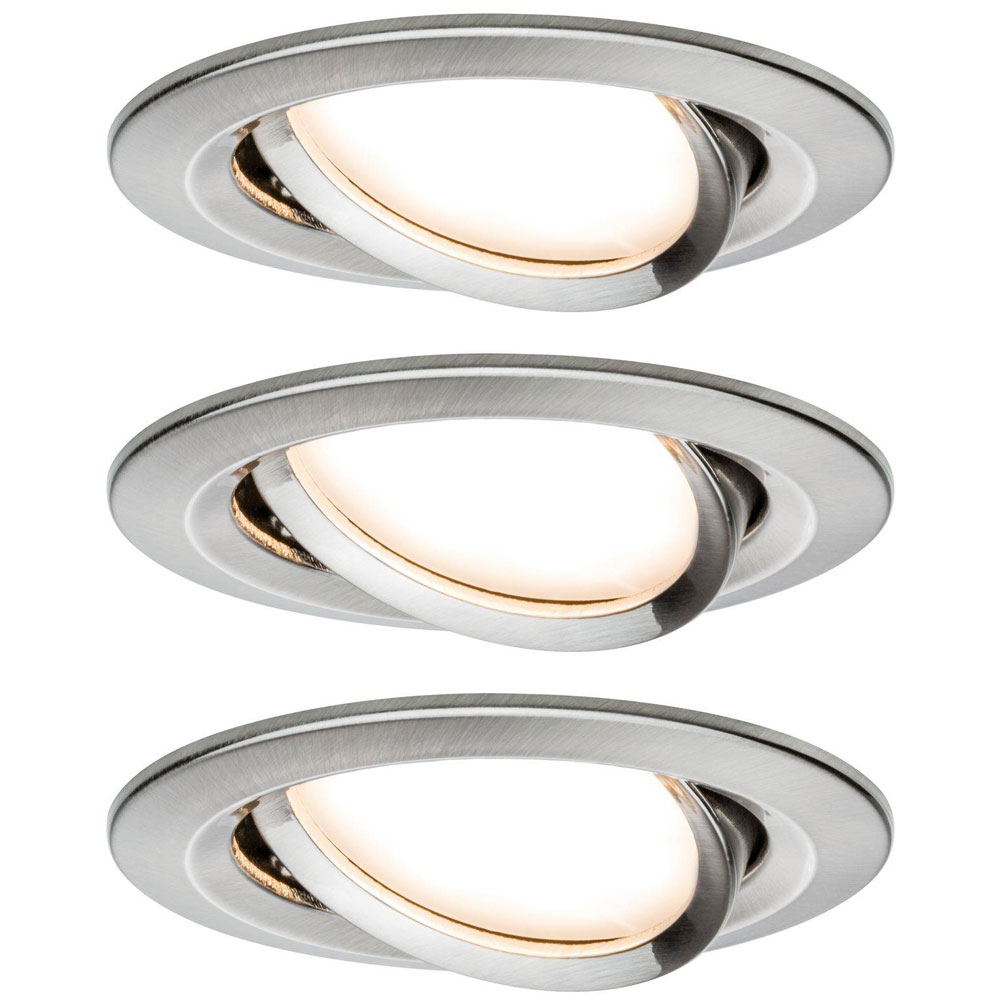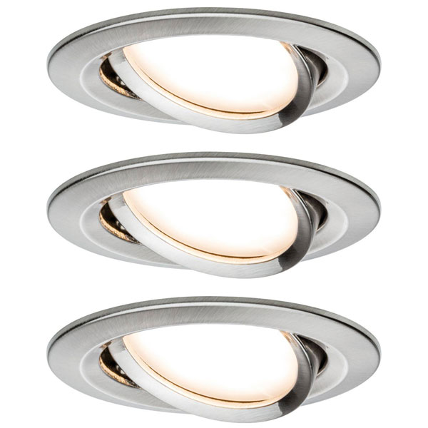 Paulmann's Nova recessed spotlight 3-piece set features a brushed iron finish and 6 W LED lighting. These flush mount lights are ideal for modern, low-profile lighting needs. Suitable for various indoor applications, they provide efficient, monochrome illumination.