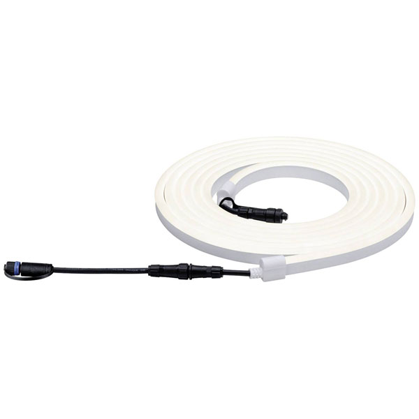 Paulmann's Neon 94191 Plug & Shine lighting features a 31 W LED strip that emits warm white light. This monochrome LED strip is ideal for creating ambient outdoor lighting. It is typically used in garden settings to enhance the atmosphere.