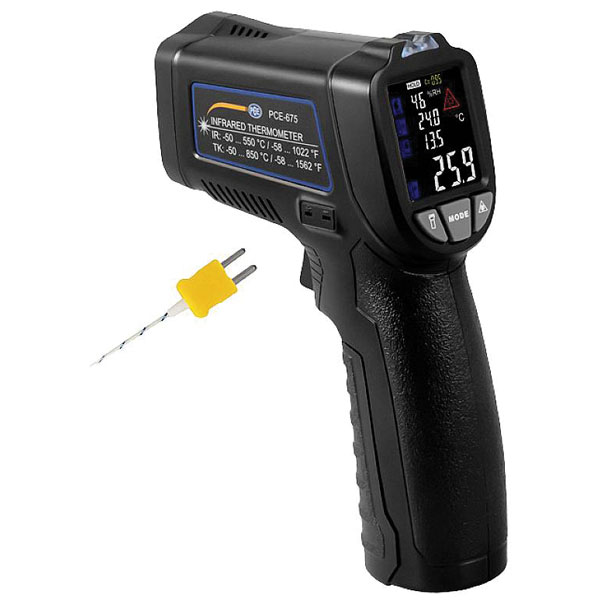 PCE Instruments PCE-675 IR Thermometer with Red Laser Measures Temp & Humidity