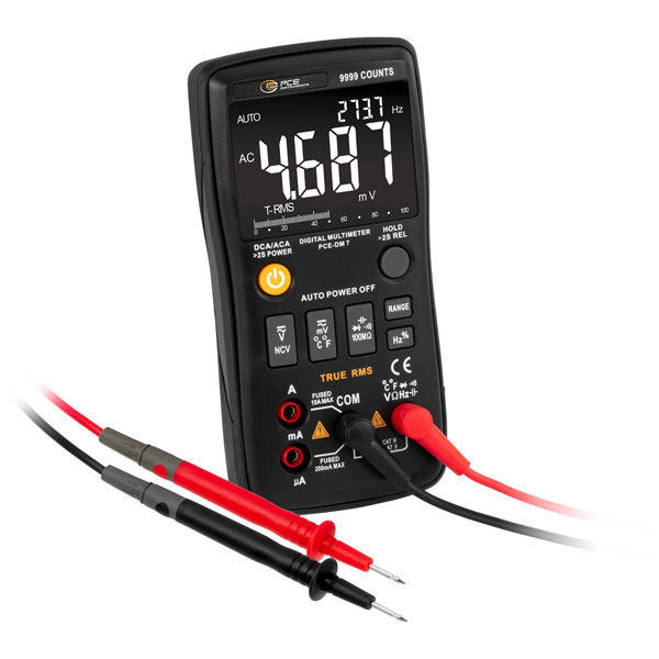 PCE Instruments PCE-DM 7 is a handheld digital multimeter designed for accurate measurement in various electrical contexts. This robust device meets CAT II 1000V and CAT III 600V safety standards, ensuring reliable performance for both residential and industrial applications. The multimeter is equipped with an array of features, including the ability to measure voltage, current, resistance, and continuity, thereby making it a versatile tool for diagnosing electrical systems. Its ergonomic design and easy-to-read display make it suitable for engineers and technicians conducting field measurements, troubleshooting home wiring, or performing equipment maintenance. The PCE-DM 7 is an essential instrument for professionals who require precise and dependable measurement capabilities.