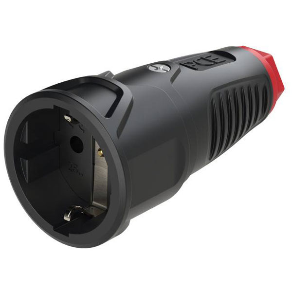 PCE PCE 2520-sr Safety Mains Socket Rubber 250V Black/Red IP20