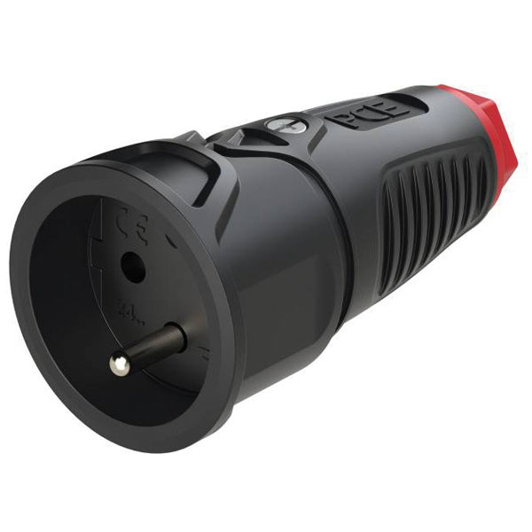 PCE 2521-sr Mains Socket Solid Rubber IP54 250V Black/Red |
