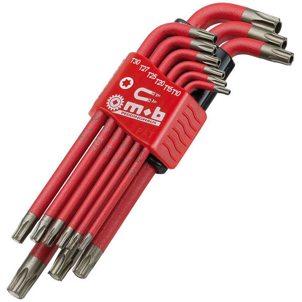 The Peddinghaus 9064020101 Torx Pin-locking 9 piece set features a magnet at the long end of the shaft that ensures that the torx screws are securely held when tightening and removing.